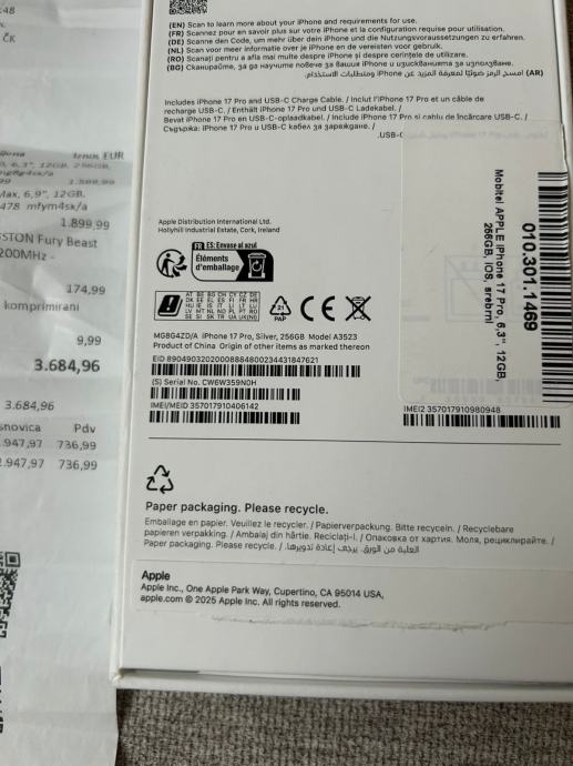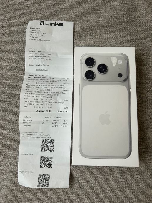 iPhone 17 Pro Silver 256GB 100% Bat/24 Ciklusa