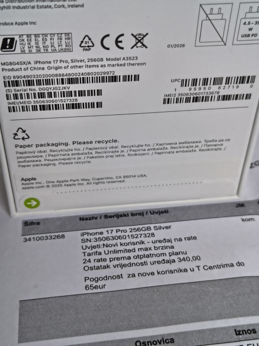 Novi vakumirani iPhone 17 Pro Silver boja