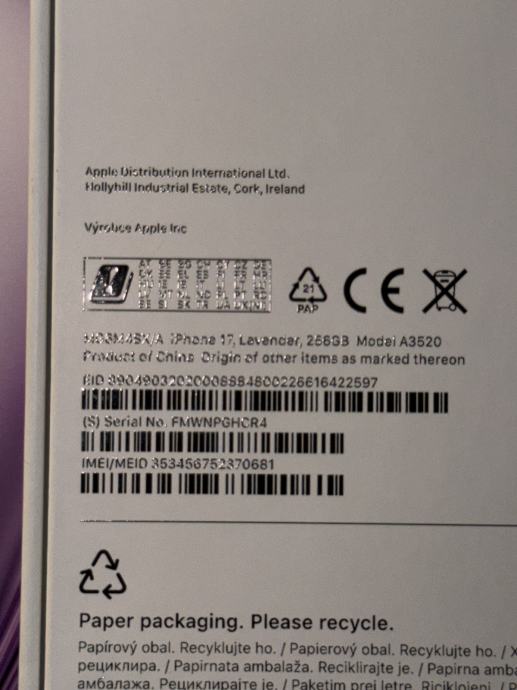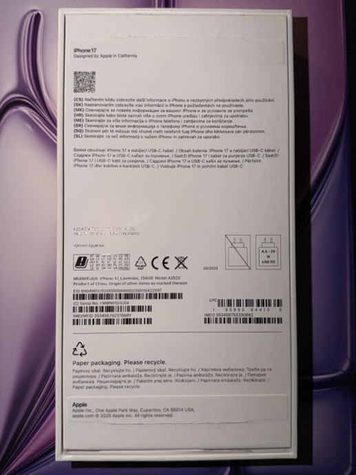 Potpuno novi iPhone 17, otvoren, no nekorišten s obzirom da boja ne odgovara.