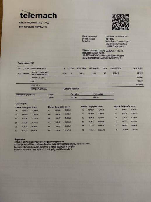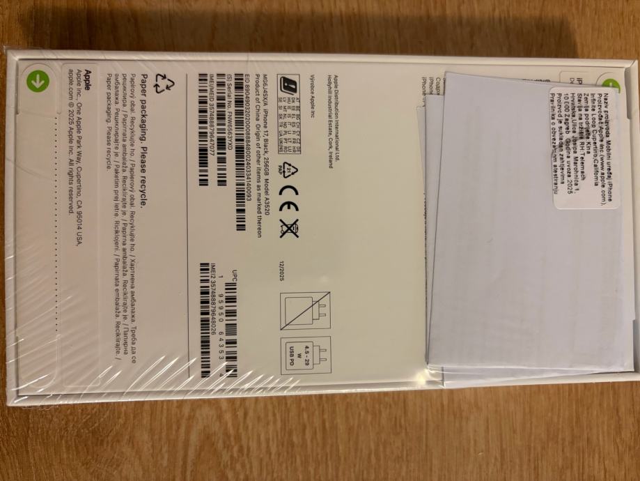 Prodajem mobitel Iphon 17 256gb crne boje. Mobitel je novi danas kupljen (zapakiran)