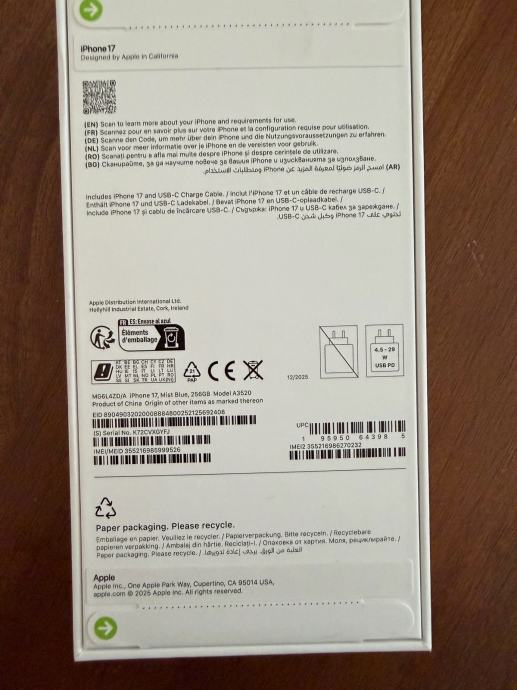 Prodajem Nov novcat iPhone 17 256 Gb.