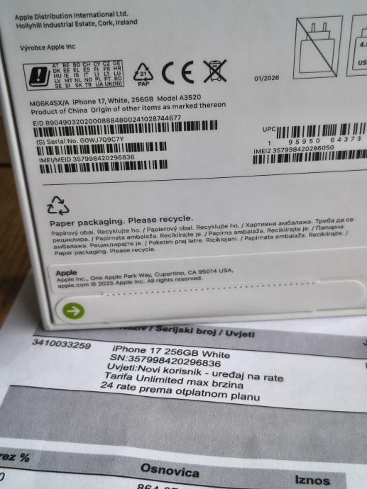 Iphone 17 256GB Bijeli Novo Zapakirano Garancija
