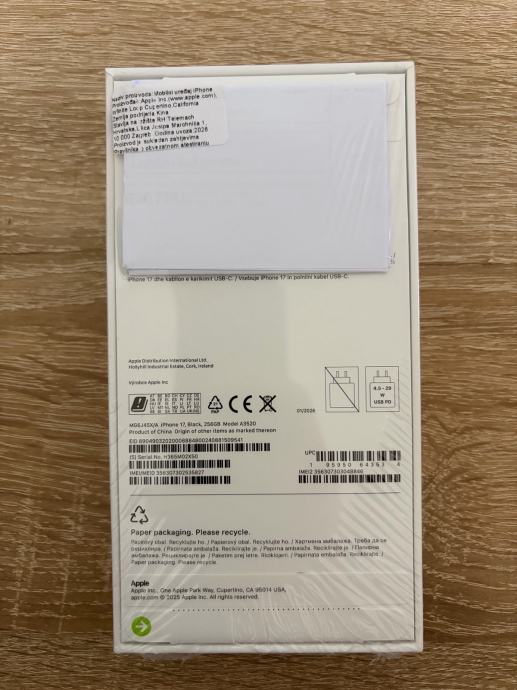 Prodajem novi zapakirani Iphone 17 256gb crne boje