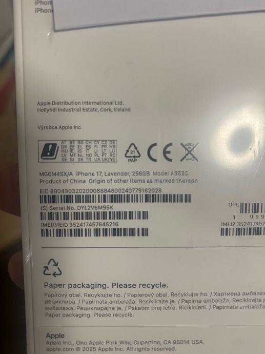 Novo,zapakirano 256gb,lavanda boja,račun,garancija 2 godine,kupljen 29.01.2026.cijena 900€.zvati na 0955127977