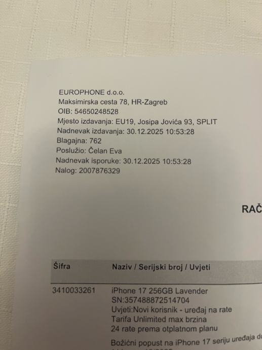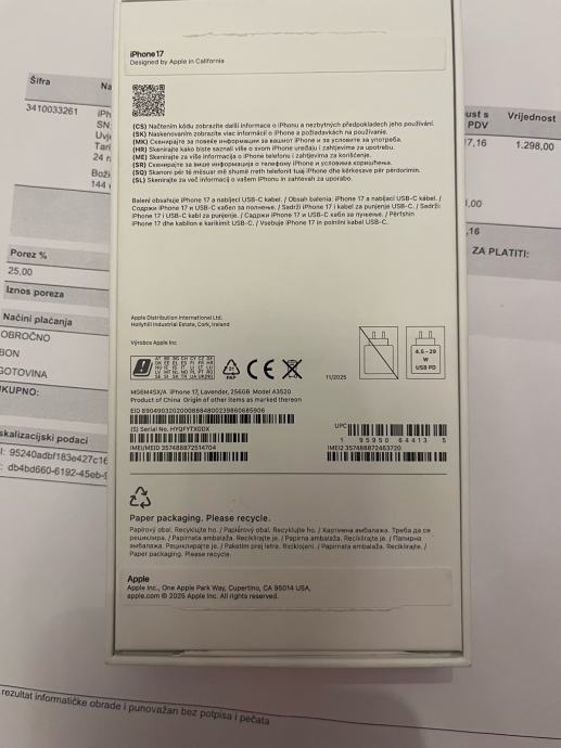 IPhone 17 256gb Lavender ( NOVO ) 2 GOD JAMSTVO