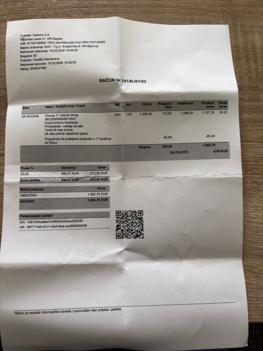 Korisnik je verificirao broj telefona u državi: Hrvatska