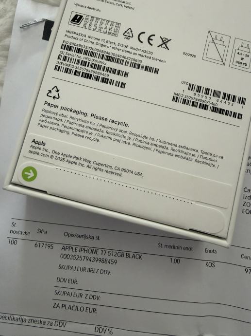 Prodajem novi, original zapakiran iPhone 17 512Gb, boje Black