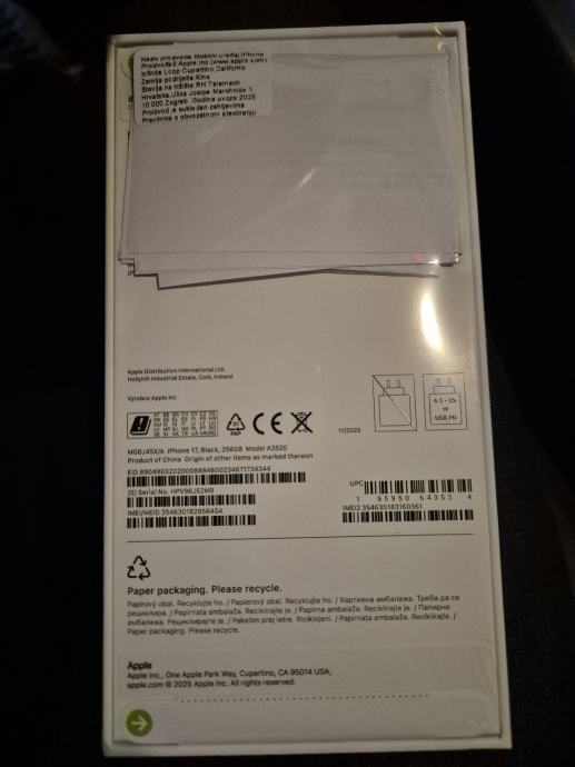 IPHONE 17 BLACK 256GB, NOVO, ZAPAKIRAN, GARANCIJA, PRODULJENJE UGOVORA.