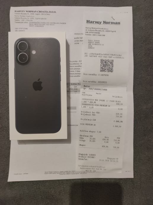 IPHONE 17 BLACK NOVO ZAPAKIRANO RAČUN I GARANCIJA 2 GODINE