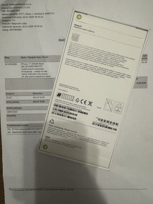 Iphone 17 Novo Vakum 256gb Racun Garancija
