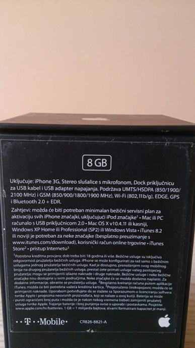 • Ekran je u odličnom stanju, čist, netaknut i bez ogrebotina, rubovi također. Na zadnjoj strani su vidljivi tragovi korištenja što je normalno za ovaj mobitel (tekst i logo na zadnjoj strani jasno su vidljivi), ali važno je za napomenuti da nema nikakvih puknuća na plastici što je također često za iPhone 3G (često puca kod konektora za punjenje, što kod ovog uređaja nije slučaj.