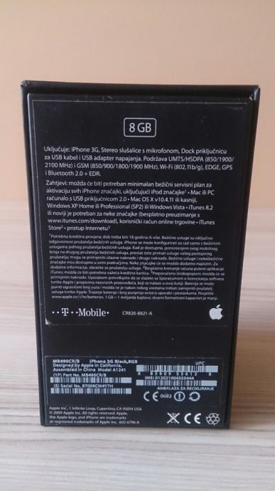 Prodajem iPhone 3G 8GB u dobrom i čistom stanju. Mobitel dolazi sa kompletnom kutijom (svi pripadajući papiri, SIM igla, novi adapter napajanja i USB kabel-ne radi dobro kod punjenja, pa bi stoga trebalo nabaviti novi).