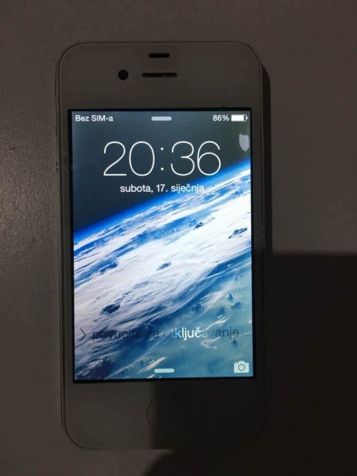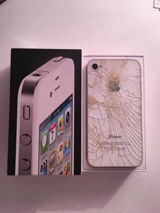 Iphone 4 8 gb, sve radi, tipka home, lock, volume, utor za punjac i slusalice, zvucnici odlicno, jedina mana je iza razbijeno staklo i flekica na displayu koja ne smeta za rad mobitela, prima sve mreze, dolazi sa punjacem. :) iOs 4.1.2, iCloud free