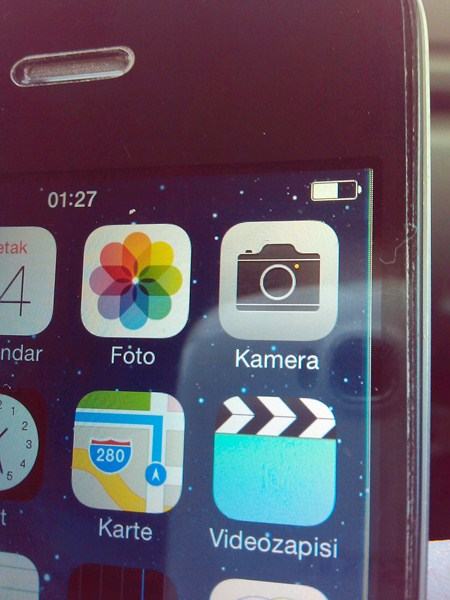 1.u gornjem desnom kutu oštećenje LCD-a ,dužine 2-3mm ,vidljivo na tamnoj podlozi, ekran je inače poptuno funkcionalan.
