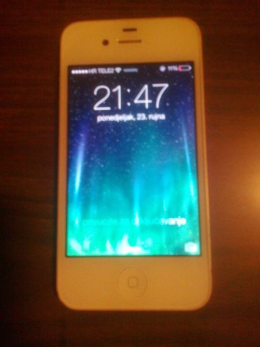 Iphone 4 bijeli, 16 GB, radi na sve mreže. Mobitel je u odličnom stanju bez ijedne ogrebotine. Ima novi softver IOS 7.
