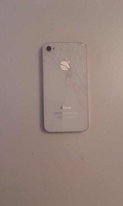 Prodajem Iphone 4 sa slike, model MD198B/A, 6,1GB memorije, stanje kao na slici, ne može se pokrenuti, razbijeno zadnje staklo. Kabel od punjača gratis bez utikača za struju s USB priključkom. Trajanje baterije nije provjereno.