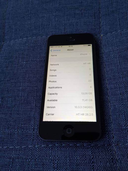 Prodajem potpuno ispravni iPhone 5 16GB Black sa manjim znakovima korištenja. Originalno na HT mreži, ali otvoren za sve ostale mreže. Dolazi s originalnim Apple punjačem, bez slušalica, s donjim dijelom kutije (nažalost, negdje sam izgubio poklopac kutije), te najnovijom verzijom softvera (iOS 10.3.3 (14G60). Prije cca godinu dana zamijenjena je baterija novom.