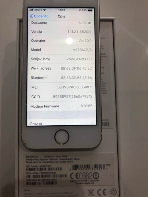 Prodajem Iphone 5s16gb kutija papiri račun punjač torbica.Mobitel je u odličnom stanju.