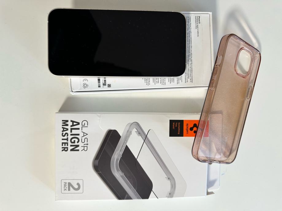 Iphone 13 ,128 GB , aktiviran 06/2022. Stanej baterije 98%. Iphone je savršenom stanju, 10/10. Cijelo vrijeme na njemu kaljeno staklo i maska spigen. Orginalna kutija,podatkovni kabel,novo spigen staklo,maska.