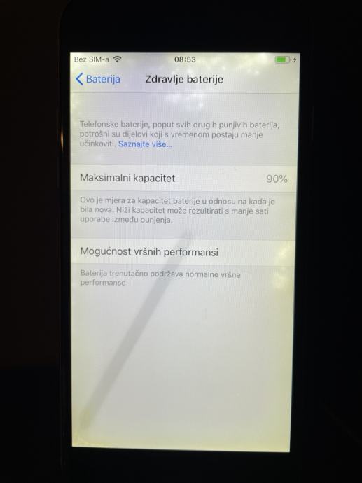 Na displayu tamnija linija na svijetloj podlozi i nepravilno prodiranje pozadinakog svjetla mjestimično, vidljivo na slikama. Zdravlje baterije 90%