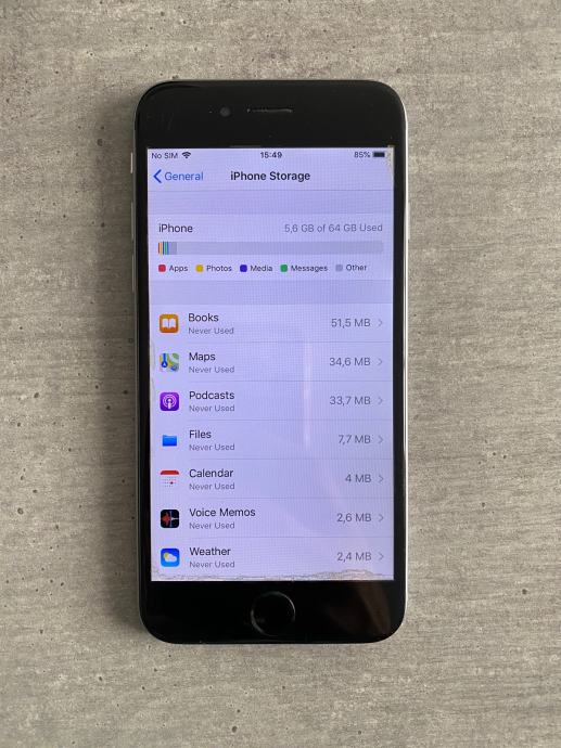 Na njemu je zamjenski ekran koji se odvojio od kućišta, touch ID ne radi, baterija na 100%
