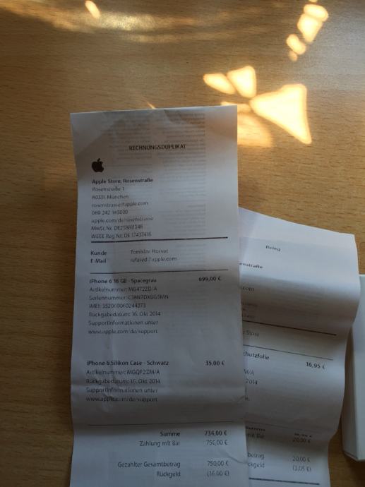iPhone 6 16 GB space gray kupljen 14.10 2014 u Apple Store-u u Minhenu.Mobitel je u perfektnom stanju, nema niti najmanje ogrebotine i radi bez greške,može proći pod nekorišten.Stanje 11/10 :)