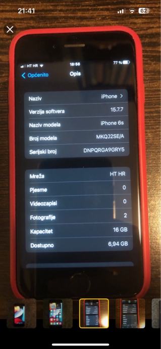 Prodajem rabljeni iPhone 6 u space gray boji s 16GB memorije. Uređaj je u funkcionalnom stanju i spreman za korištenje. Idealan za svakodnevnu upotrebu ili kao rezervni mobitel. Radi na sve mreže, uz mobitel ide kutija i maskice, baterija na 100 %. Može i punjač uz mobitel, radi u redu, slika u prilogu
