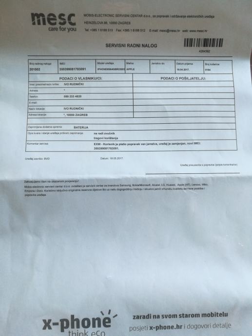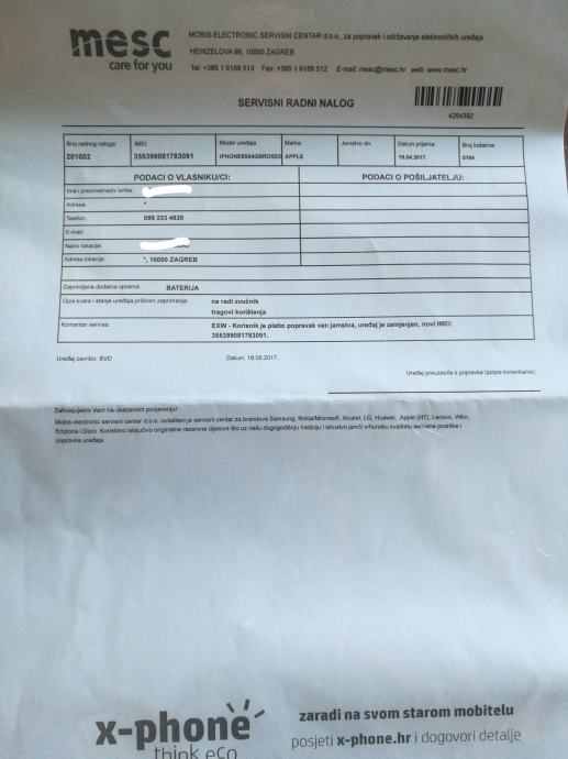 Prethodni uređaj je bio na servisu te je servis predložio zamjenu mobitela za novim od strane Apple-a.