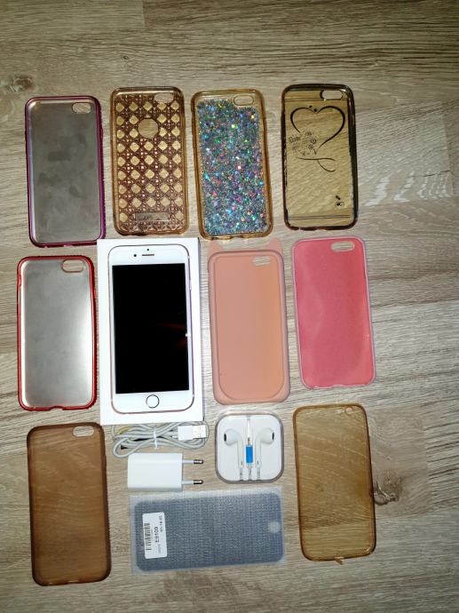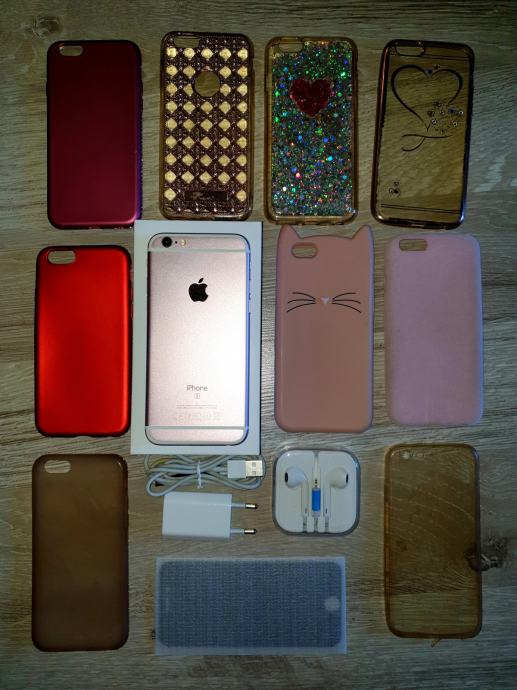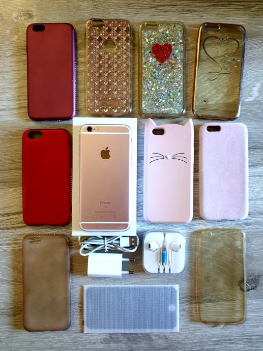 iPhone 6s 64GB, rose gold, očuvan. Na mobitelu zalijepljeno zaštitno staklo, uz mobitel se dobije još jedno novo zaštitno staklo i 9 maskica.