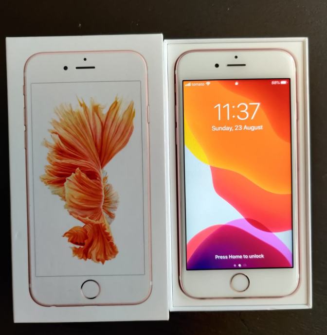 Prodajem iPhone 6s rose gold, 16 GB (model A1688) potpuno očuvan, bez oštećenja i tragova korištenja. Mobitel dolazi u originalnoj kutiji, uz slušalice i novi originalni punjač te s novom zamijenjenom baterijom koja je još uvijek pod garancijom. Uz mobitel poklanjam i nove nekorištene bežične slušalice. Detaljne specifikacije uređaja možete provjeriti na internetskoj stranici: https://support.apple.com/kb/SP726?locale=en_US&viewlocale=hr_HR