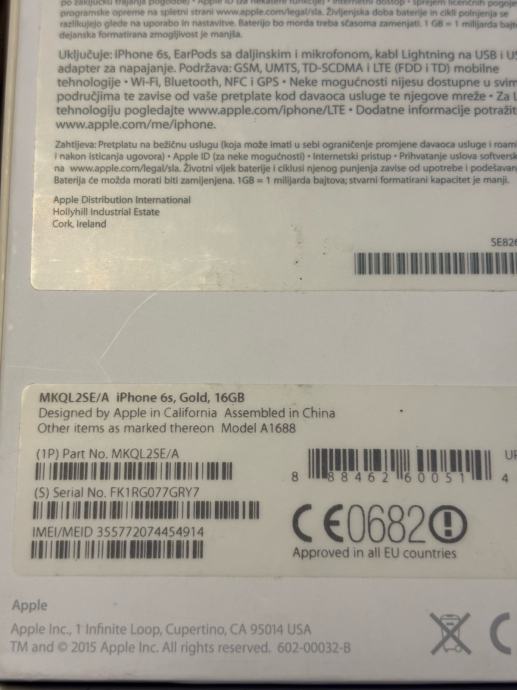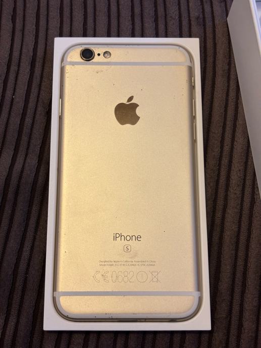 Prodajem iPhone 6s u zlatnoj boji s 16GB memorije. Telefon je u funkcionalnom stanju i dolazi u originalnoj kutiji s priborom - slušalicama i adapterom. Radi se o rabljenoj jedinici spremnoj za korištenje.
