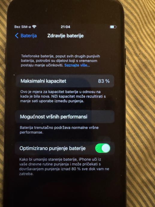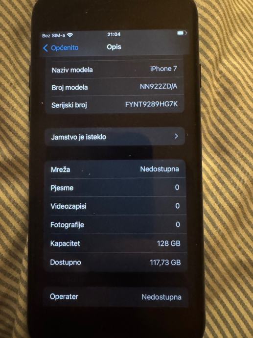 Prodajem rabljeni iPhone 7 s 128 GB memorije, u crnoj boji. Mobitel dolazi s kabelom za punjenje i baterija još uvijek ima 83% maksimalnog kapaciteta. Uređaj je u funkcionalnom stanju, spreman za korištenje odmah nakon kupnje.