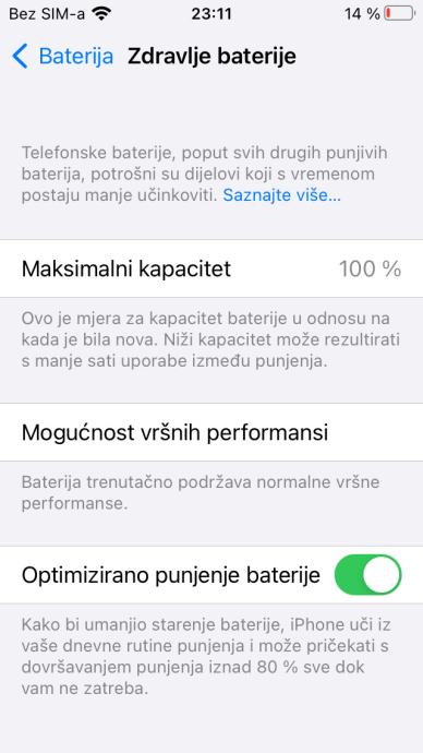 Zdravlje baterije: 100%