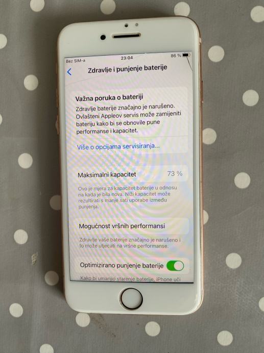 Stanje baterije 73%, mala ogrebotina na staklu (vidi sliku, staklo nije puklo), inače dobro očuvan, 256 gb memorije