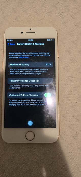 Iphone 8 gold sve radi osim home tipke , baterija je na 87 posto ,POGLEDATI SLIKE