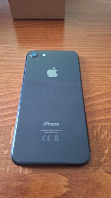 Refurbished(obnovljen) crni Iphone 8 sa 64GB memorije, kupljen u Hrvatskom Telekomu 2022. i nikad nije korišten. Zdravlje baterije je 100%.