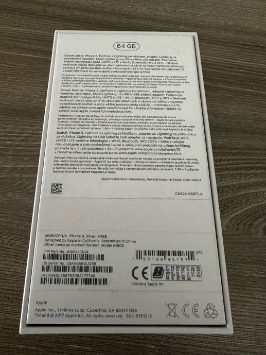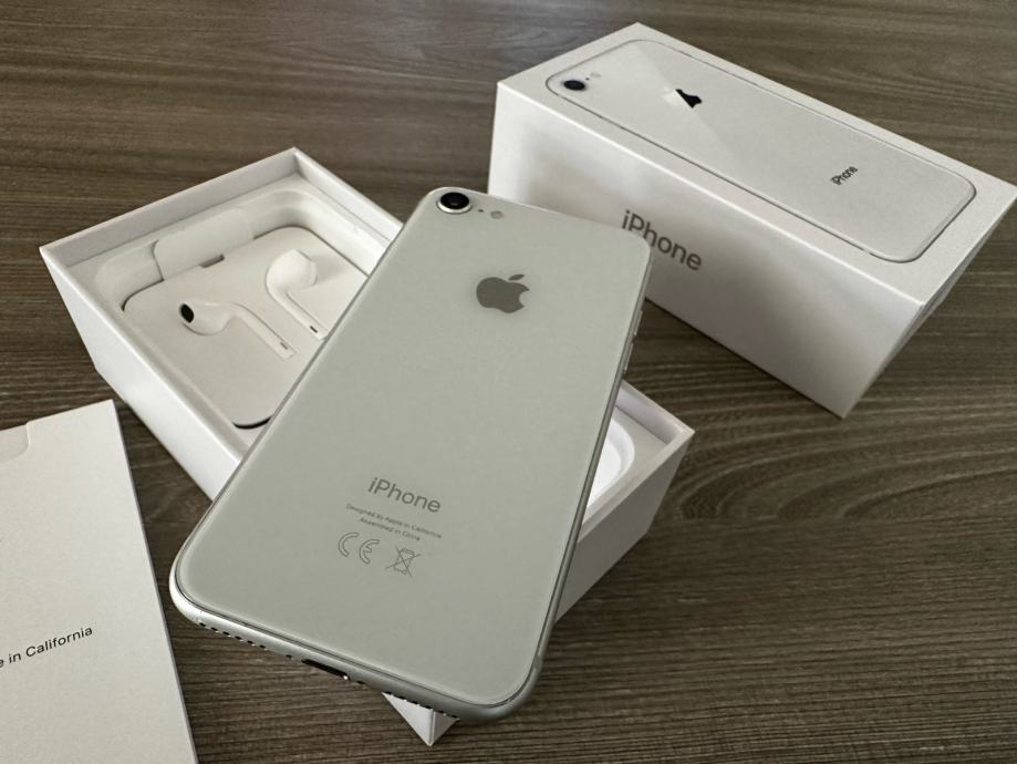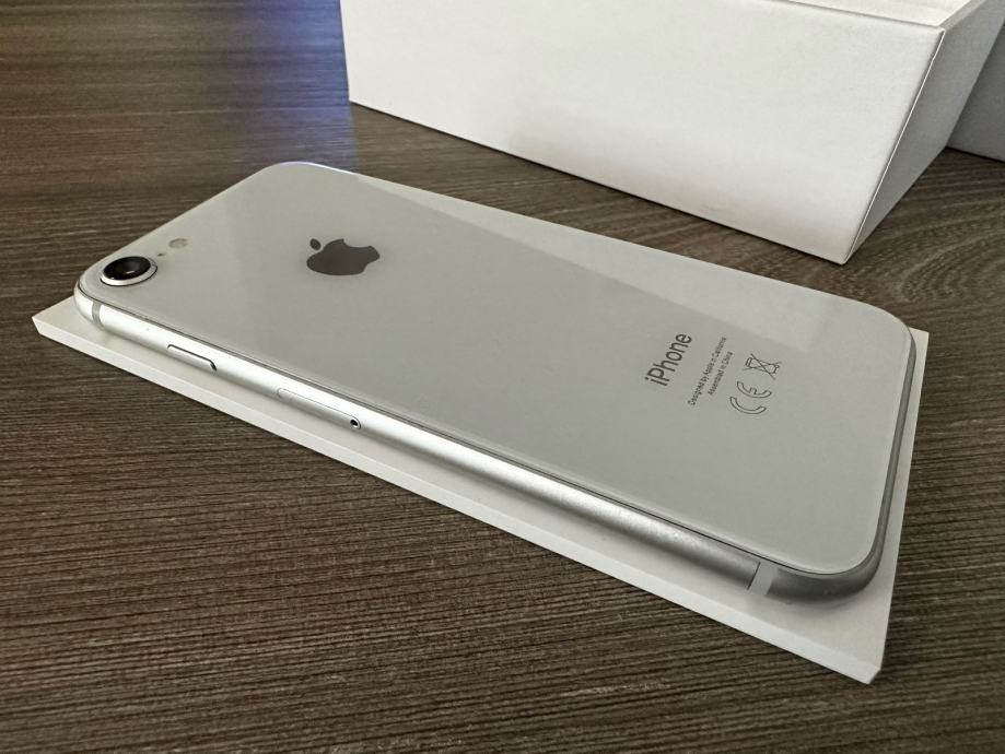 iPhone 8, silver, 64GB, potpuno ispravan i izuzetno očuvan. Dolazi sa originalnom kutijom i neraspakiranim slušalicama.