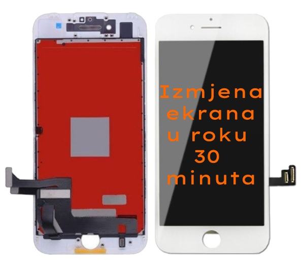 Izmjena ekrana na iphone 7 uređaju u roku 30 minuta. 6 mjeseci garancija na rad.