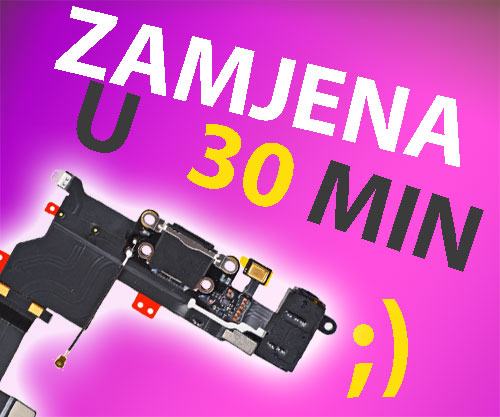Promjena konektora punjenja / baterije na Apple iPhone 5S . Ako uz konektor nema većih okolnih oštećenja promjena je u većini slučajeva gotova unutar sat vremena od zaprimanja uređaja.