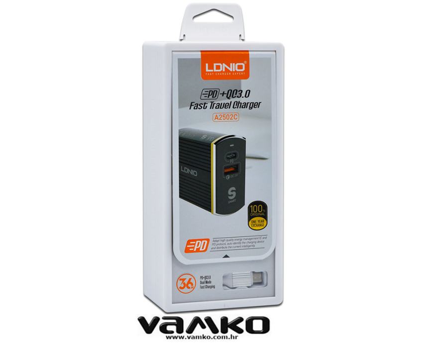 Ldnio Brzi punjač QC 3.0 PD + USB C kabel