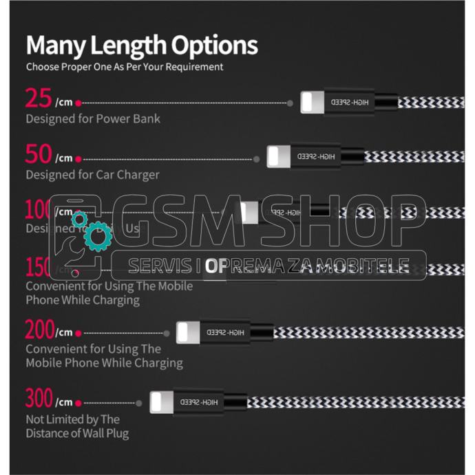 * Pleteni kabel, otpornost na habanje, izdržljiv za korištenje