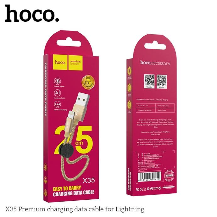 TIP : HOCO cable Premium charging data cable for iPhone Lightning 8-pin X35 25cm GOLD