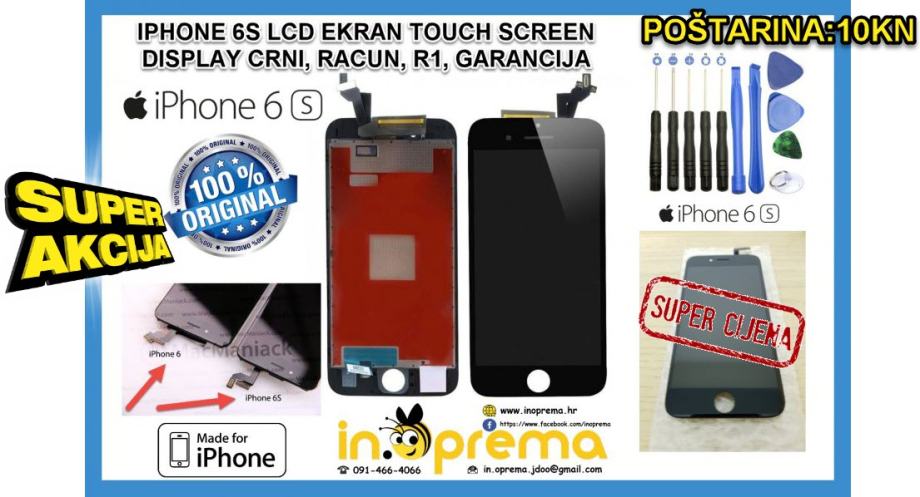 ►Isključivo za iPhone 6S model►GARANCIJA 6 MJ►Cijena ekrana: 19 EUR
