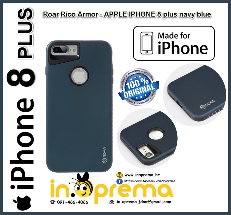 TIP: ROAR for iPhone 8P RICO Matte Hybrid 2-in-1 PC & TPU Back Mobile Phone Accessory Casing for iPhone 8 Plus 5.5 inch - NAVY BLUE