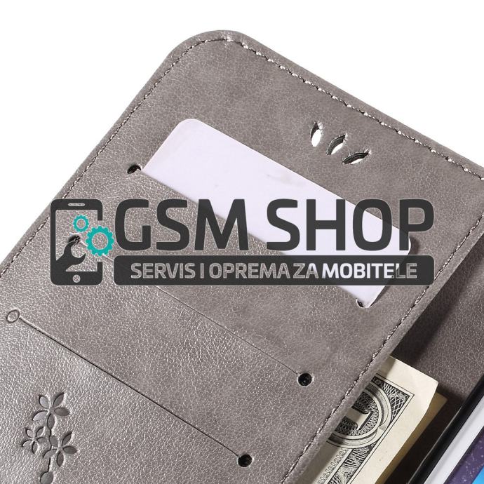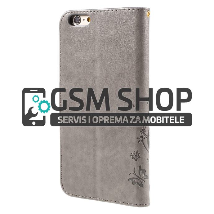 Kožna torbica futrola Apple iPhone 6S cvijeće i leptir dizajn siva
