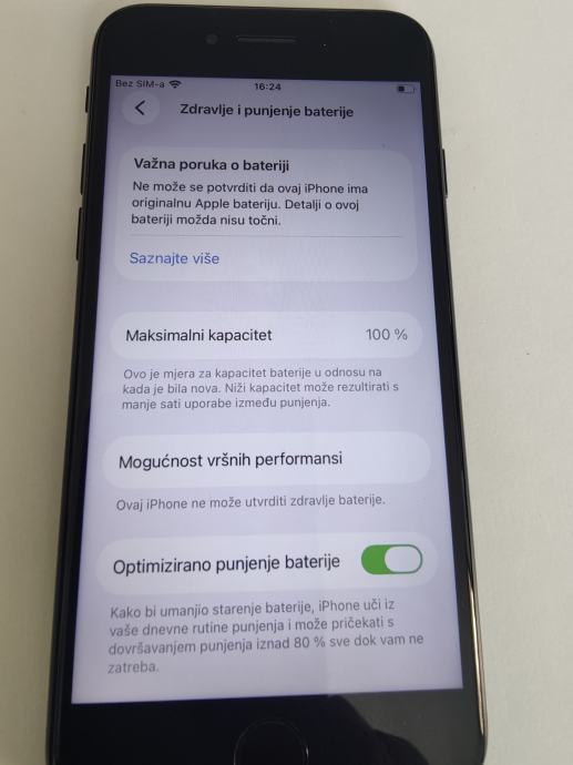Ispravan i dobro očuvan mobitel sa punjačem, baterija zdravlje 100 posto (stavljena nova),punjač i kabel Novi (zamjenski),Memorija 128 GB