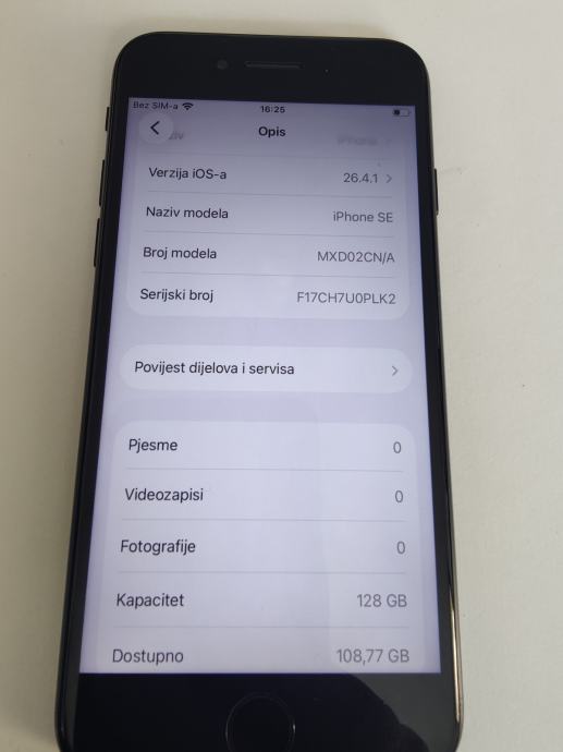 iPhone SE 2 gen(2020) 128 GB ,baterija zdravlje 100 posto, iOS 26.4.1