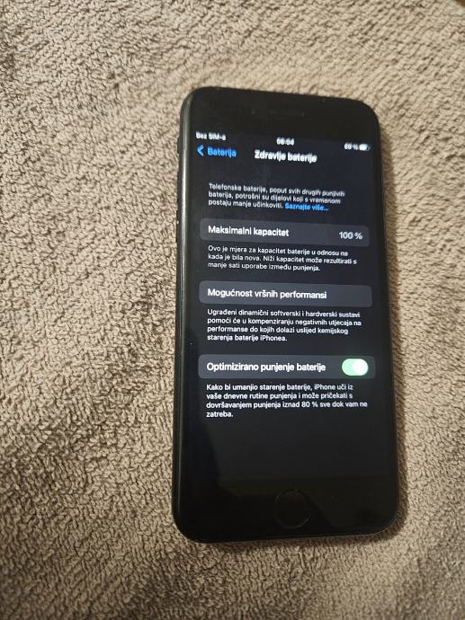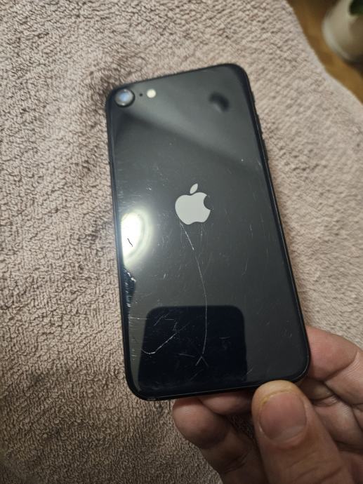 Iphone se 2020 crni koristen baterina 100% iza par povrsinsih ogrebotina nista nije puknuto sve original maskica kabl