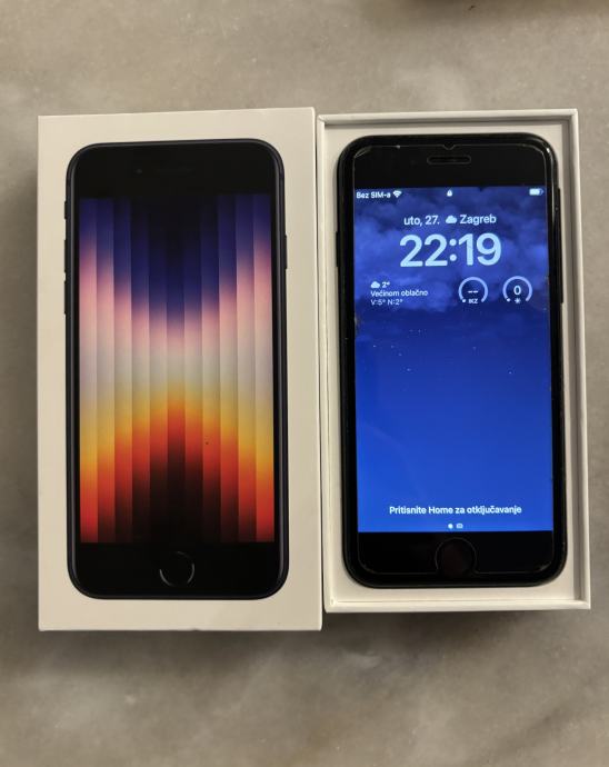 Prodajem Iphone SE 2022 64 GB. Malo korišten, očuvan, bez oštećenja. Zdravlje baterije 93%. Priložena kutija.
