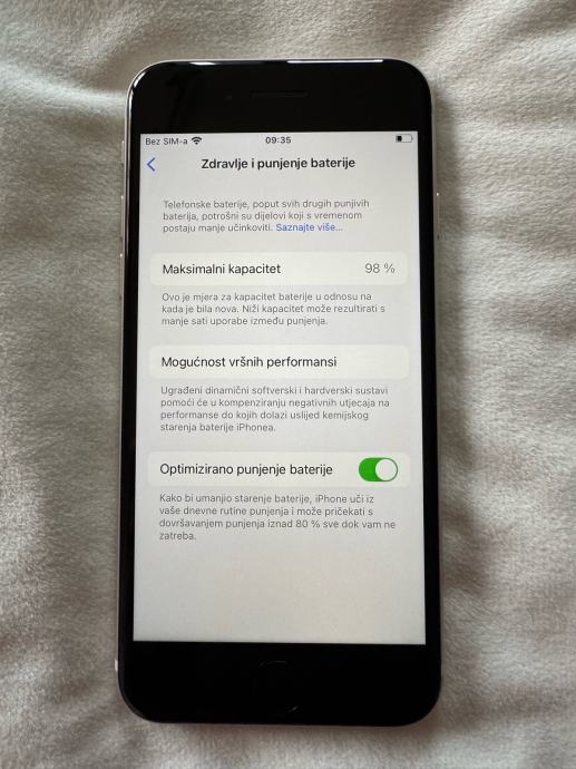 Zdravlje baterije 98%, na uređaju nije ništa mijenjano.